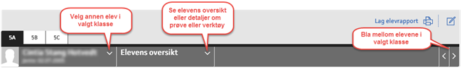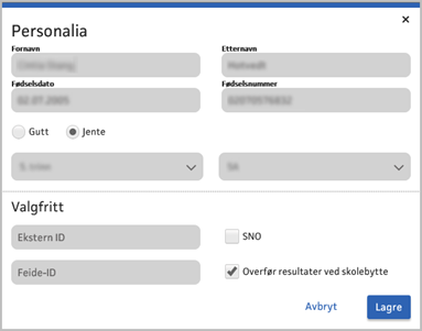 Her vises elevens navn, kjønn, fødselsdato og gruppe.