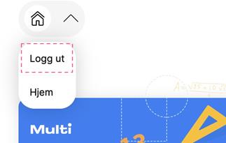 Ved å trykke på nedtrekkspilen og så velge Logg ut i menyen vil eleven logges ut av Multi Smart Vurdering. Klikker man på Hjem kommer man til Skolestudio.