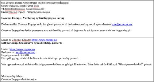 NB! Vær oppmerksom på at det midlertidige passordet bare er gyldig i 10 minutter. Etter dette må du klikke på "Glemt passord?" på nytt.