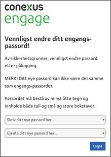 Merk: Ditt nye passord kan ikke være det samme som det midlertidige passordet.