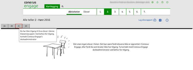 Må du kontakte skoleadministratoren i Conexus Engage på din skole, og be de om å gi deg tilgang til rett klasse.