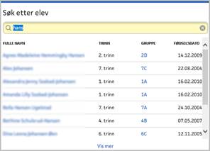 startsiden kan du raskt søke opp en elev ved å skrive elevens navn i feltet «Søk