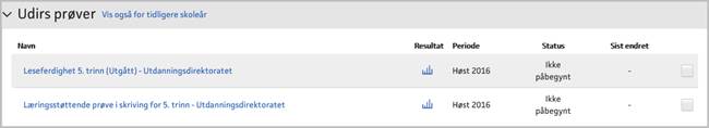 Her vises alle UDIRs kartleggingsprøver eleven skal vurderes i for nåværende periode.